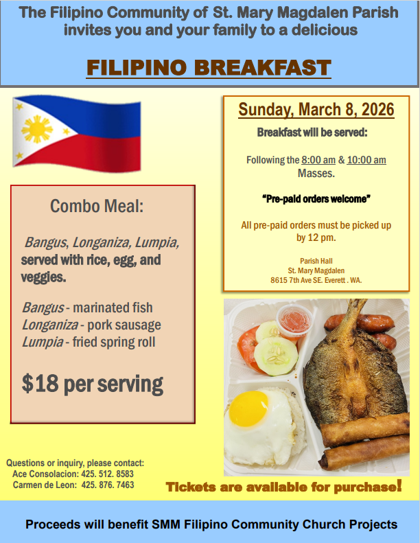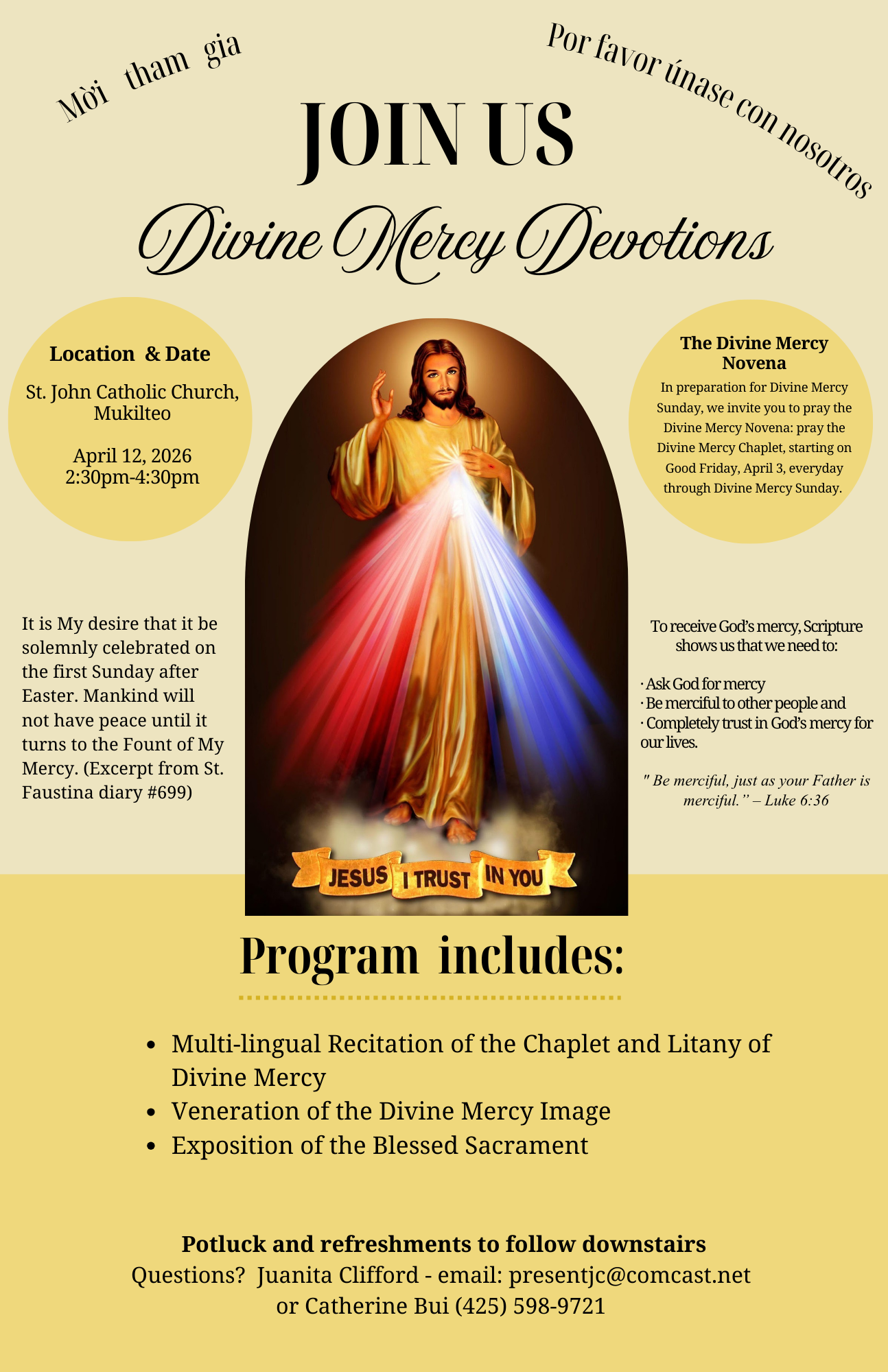 Masses will be offered at 7:30am, 11am, and 7pm (Multilingual)